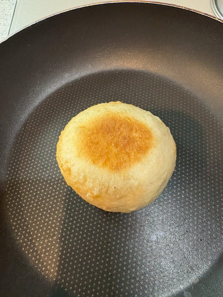 フライパンで焼き直すと表面がパリッと香ばしくなって、中のふんわりモチモチ感とのコントラストがたまらないんですよね。